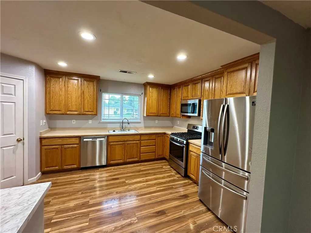 Welcome to this beautifully designed 3-bedroom, 2-bath home that perfectly blends comfort, style, and functionality. From the moment you step inside, youll be greeted by a warm, inviting open floor plan that creates an effortless flow between the living, dining, and kitchen areasideal for both everyday living and entertaining. The cozy fireplace serves as a stunning focal point, adding charm and comfort to the heart of the home. The spacious primary suite offers a peaceful retreat, complete with a walk-in closet and a dual-sink vanity that makes busy mornings a breeze. Thoughtfully designed with convenience in mind, the home features abundant hall storage and a large pantry, ensuring everything has its place. Step outside to enjoy the covered back patioperfect for relaxing evenings, weekend barbecues, or simply enjoying the beautifully landscaped backyard. Whether youre hosting guests or unwinding after a long day, this outdoor space delivers. Located in a great neighborhood, this home offers the perfect combination of tranquility and community. With its inviting atmosphere and well-appointed features, this is a property you wont want to miss.
