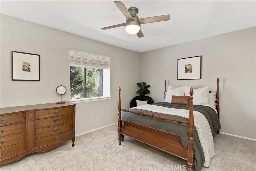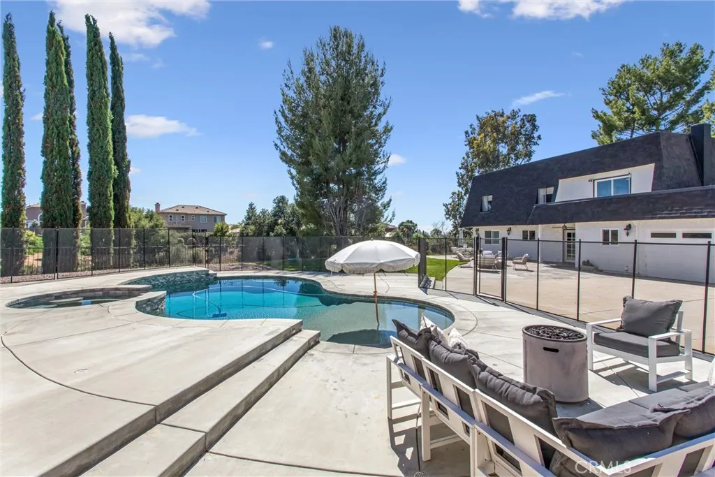 PANORAMIC VIEW HOME ON 1/2 ACRE LOT with pool, fire pit and OWNED SOLAR! This two story home features a classic "mansard' roof with sophisticated architectural design. Experience elevated living with sweeping mountain and canyon views on a rare oversized lot. Designed for entertaining and everyday comfort with owned solar providing energy savings and a private backyard retreat. Inside, the home offers a comfortable and functional layout perfect for both everyday living and entertaining. Natural light fills the living spaces, creating a warm and welcoming atmosphere throughout. The property features 4 bedrooms, 3 baths, fireplace in the family room, a functional, family-friendly layout featuring a formal dining room, generous living areas, and an expansive living/bonus room offering flexible use as a game room, media space, or playroom. Large windows throughout the home invite in natural light and showcase the stunning mountain and canyon views that set this property apart. The kitchen has quartz countertops with plenty of cabinets and storage along with a double oven, while the bathrooms are beautifully remodeled as well. All four spacious bedrooms are located upstairs, offering privacy with double doors into the primary bedroom. The primary suite is a true highlight, featuring a nicely remodeled bathroom complete with a soaking bathtub-perfect for unwinding at the end of the day. Step out onto your cozy balcony to enjoy the peaceful mountain views or the pool activities down below. The backyard is designed for true Southern California living-featuring the private pool, bui