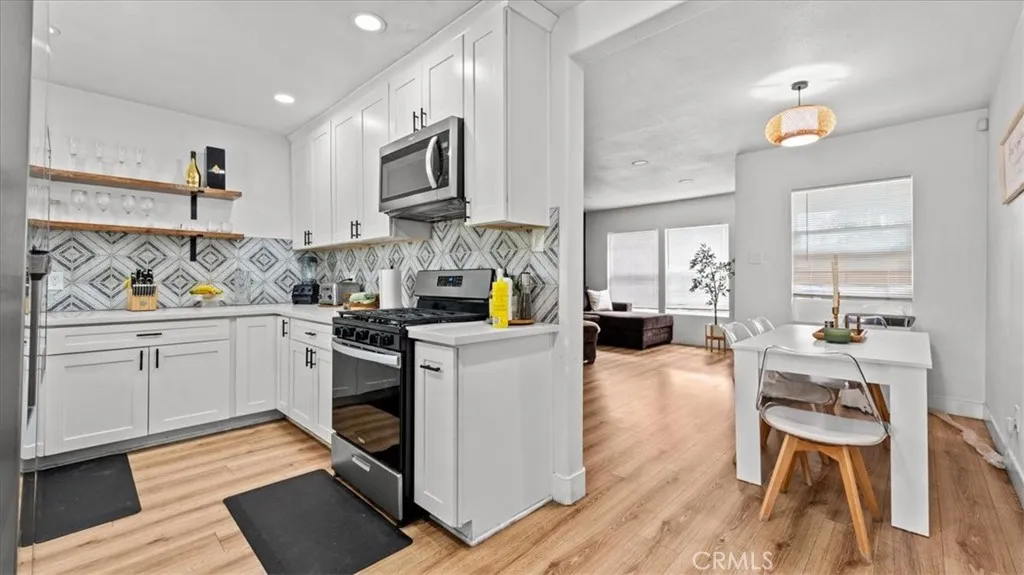 Completely remodeled inside and out, this home comes with a brand new roof and is ready to go. The kitchen shines with white shaker cabinets, quartz counters, geometric tile backsplash, and stainless steel appliances including a gas range. New flooring and recessed lighting run throughout. The primary bedroom features its own fireplace, and both bathrooms have been fully redone. Solar panels already installed, two-car garage, and a backyard with plenty of room to make your own. From the moment you pull up, this home makes a statement!
