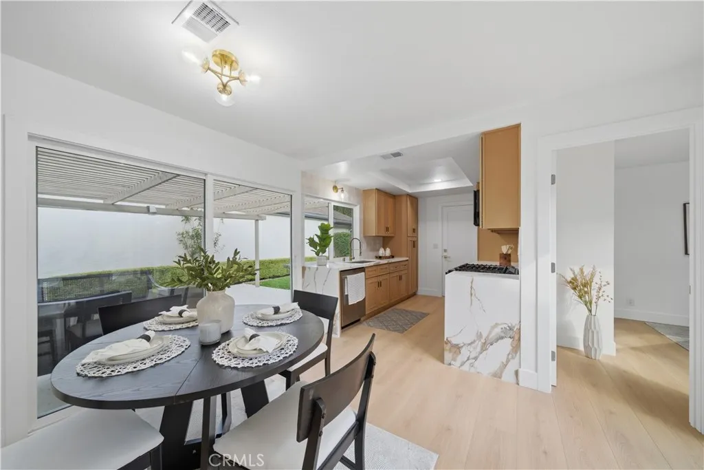 This fully renovated, sophisticated residence, nestled within the prestigious Laurelwood Community, represents a complete reimagining of modern suburban living. Extensively remodeled to blend timeless architecture with contemporary luxury, this gem showcases a meticulously curated space designed for those with discerning taste. The homes transformation begins the moment you step into the light-drenched living room, where natural light and a floor to ceiling designer finished fireplace set the tone. The heart of the home, the chefs kitchen, has been elevated with premium quartz countertops including quartz waterfall finishing at the open ends of the all-new cabinetry, recessed lighting, updated fixtures and hardware and stainless-steel appliances ensuring every meal is prepared in an environment of absolute refinement. Off of the adjacent dining room, middle open sliding doors lead out to an interior alcove which bathes multiple surrounding rooms in warm and inviting natural light. With 3 total bedrooms, including a fully renovated primary bedroom with a spa-like ensuite and great light from the central alcove, and a completely renovated guest bath, this home is fully ready for its next chapter. Off the kitchen is a large sliding door which leads out to an enviable private yard space which features a covered patio, a large grass area and mature planter beds. The perfect place to play or entertain in privacy and security and, together with the kitchen, allows for true indoor/outdoor living. An attached direct access two car garage with dedicated laundry hook ups completes the