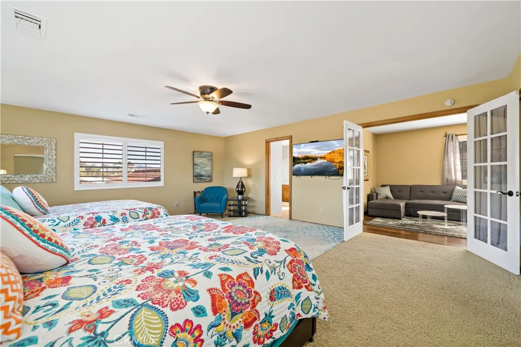 Experience the dream of living among the vineyards in Temecula Valley Wine Country! This stunning property offers everything you could want in a luxury estate, including a separate guest house/ADU and an active, income-producing vineyard.The main residence spans approximately 2,400 sq ft and features a thoughtfully designed two-story layout. Downstairs, youll find two bedrooms and a full bathroomperfect for guests or multigenerational living. Upstairs, the private primary suite includes a full bathroom, loft, and dedicated office space, all complemented by breathtaking vineyard and valley views.Soaring ceilings on the main level create an open, airy feel, enhancing the spacious living room and dining area. French doors lead to an expansive patio, seamlessly blending indoor and outdoor living.Step outside to your entertainers paradise. The beautifully designed outdoor space includes a built-in BBQ with bar seating, a cozy fire pit conversation area, and multiple dining spaces illuminated by charming market lights. Tucked away for privacy, a spa retreat with a pub table provides the perfect setting to unwind under the stars while taking in sweeping vineyard views. The approximately 1,100 sq ft guest house offers incredible flexibility, featuring 3 bedrooms, 2 full bathrooms, its own covered patio, private yard, and a detached 2-car garageideal for extended family, guests, or as a fully self-sufficient, income-producing ADU.Between the main home and guest house, a resort-style oasis awaits. Enjoy a sparkling pool, covered pergola, gazebo, and even a private putting greenperfec