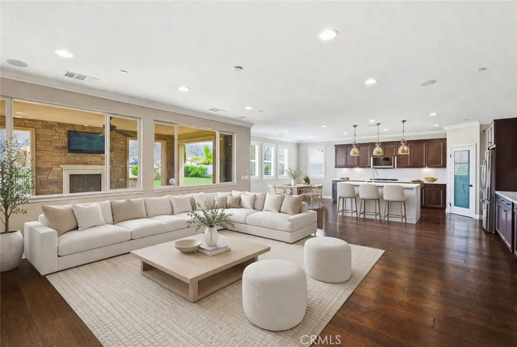 The Landmark Estate | 11868 Viola Circle This is The One. A once-in-a-generation opportunity to own the crown jewel of the Corona foothills. Never before offered on the market, this immaculate, original-owner sanctuary is presented in turnkey, better-than-new condition. Commanding one of the largest lots in the region on an elite cul-de-sac, the estate sits in a peerless, elevated position with panoramic, unobstructed views of the mountains. The Main Residence A masterpiece of architectural flow and quiet luxury. Authentic real wood floors lead through an open-concept layout designed for high-performance living. The Master Retreat is a true sanctuary, featuring a shower and deep soaking tub. The Chefs Kitchen is an exercise in minimalist perfection, anchored by a massive center island and a dedicated coffee station. The expansive upstairs loft is pre-wired for a home theater and pre-engineered for an effortless 6th bedroom conversion. The Multi-Gen Powerhouse | Two Homes, One Roof This is the definitive multi-family asset. The integrated ADU suite offers total autonomy with a private entrance and flexible utility. Configure it as a sophisticated 1/1 apartment or a massive 3/2 secondary residence. It is a true "home-within-a-home" that refuses to compromise on luxury or privacy. The Grounds: Sophisticated Architectural Experience the "California Room" a world-class outdoor living space featuring a fireplace and a professional-grade exterior kitchen. Pomegranate and Peach trees, all set against the serene green of the home's putting green. Should you desire to add a pool in f