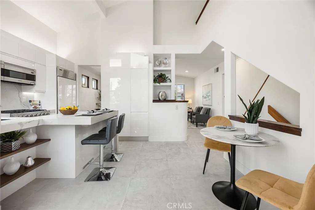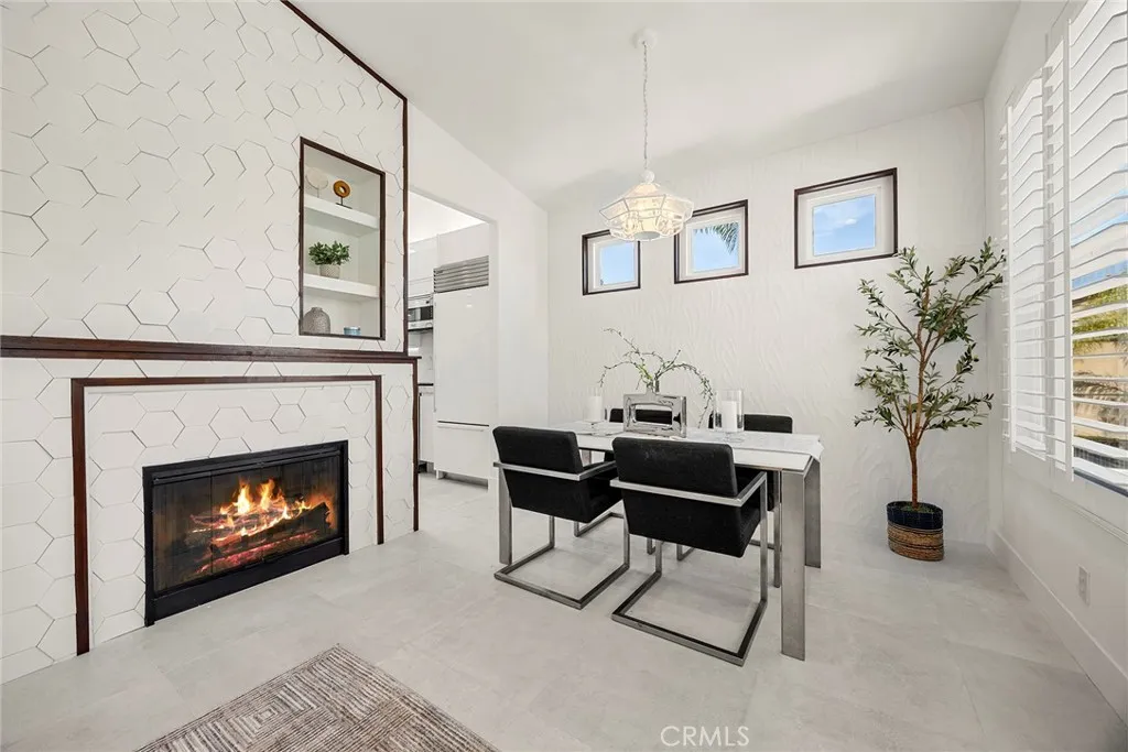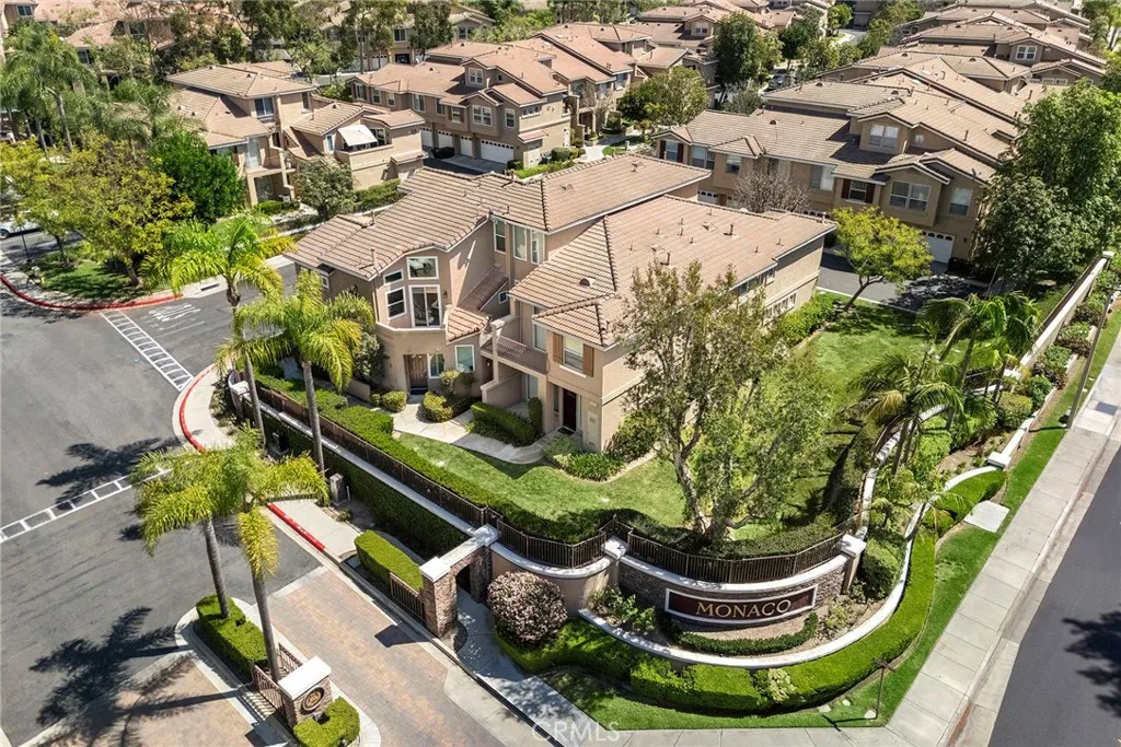 Welcome to a true designers showcase in the highly sought-after Monaco community of Anaheim Hills. This exceptional residence has been thoughtfully upgraded with a level of detail and sophistication rarely found in homes of this caliber. From the moment you step inside, youre greeted by stunning porcelain tile accent walls and a striking fireplace surround that serves as a centerpiece of the living space. Every element has been curated to create a modern yet inviting atmosphere. The gourmet kitchen is a standout, featuring premium Viking appliancesincluding a 5-burner range, microwave, and dishwasherpaired with a Sub-Zero refrigerator. Quartz countertops, a convenient breakfast bar, and an adjacent dining nook make this space perfect for both everyday living and entertaining. Step outside to the private patio to enjoy tranquil views of trees and open skyan ideal setting for morning coffee or evening relaxation. The main level offers two bedrooms, including a luxurious primary suite designed with comfort and style in mind. The spa-inspired primary bath features a spacious walk-in shower, dual sinks set in elegant stone countertops, a private water closet, and a generous walk-in closet. A beautifully updated hall bath continues the homes cohesive design with high-end finishes and a custom walk-in shower. Upstairs, a versatile loft functions as a third bedroom or private retreat, complete with its own well-appointed bathroom and ample closet space. Bamboo flooring extends throughout both levels, complementing the homes upscale aesthetic. As an end unit, the home is filled with