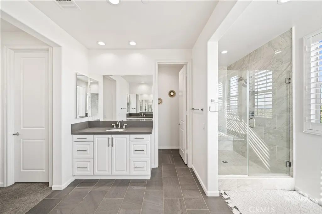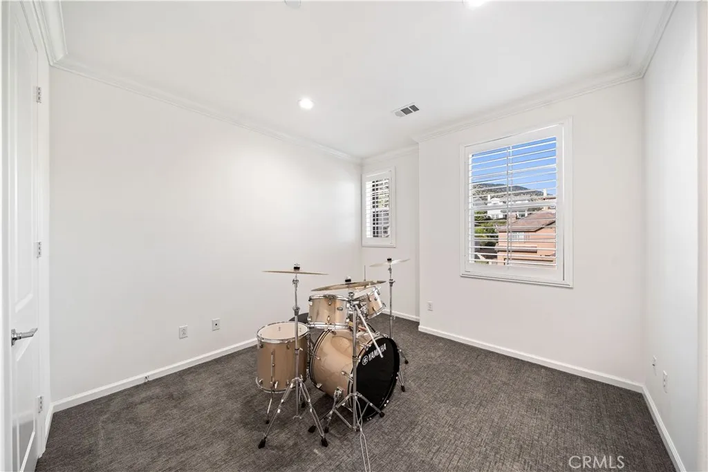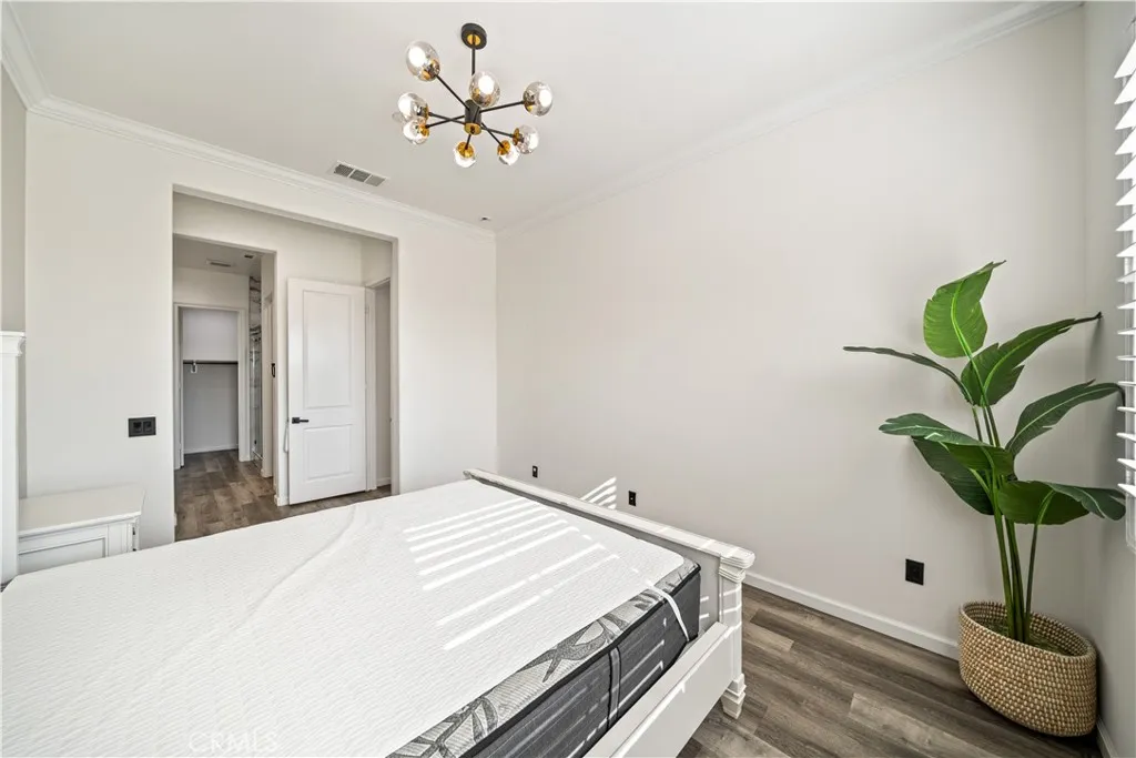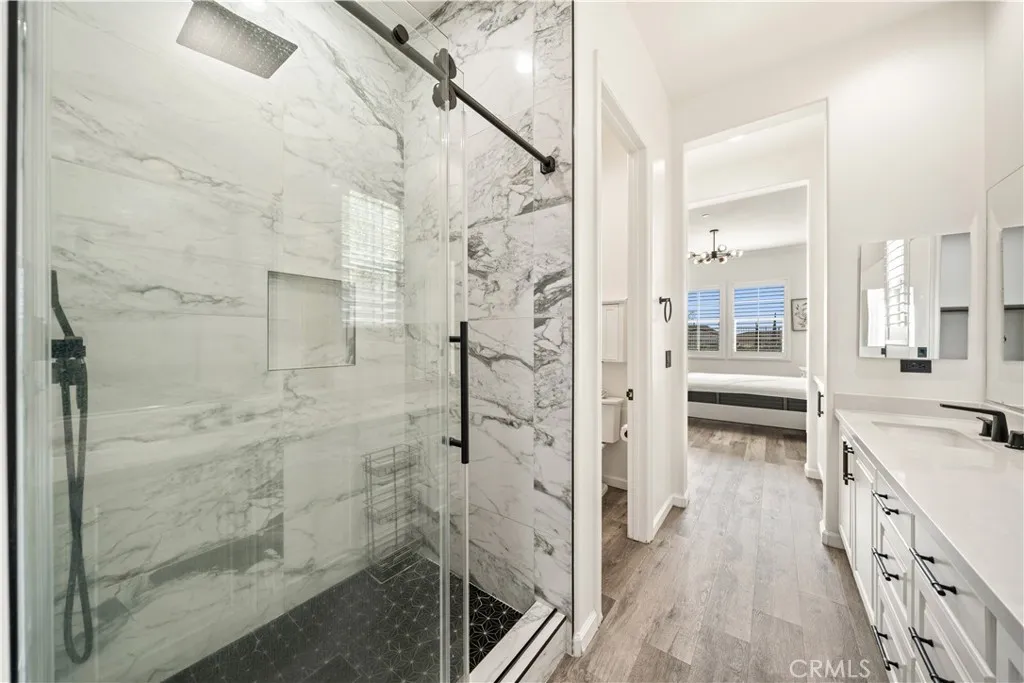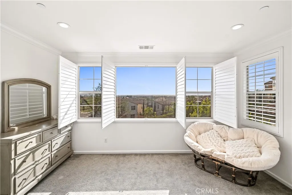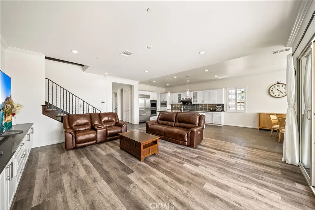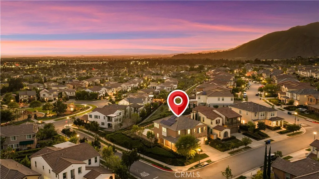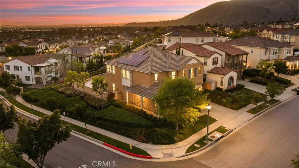 Located in the highly sought-after Rosedale community of Azusa, this beautifully upgraded home is situated on an oversized premium corner lot of approximately 8,968 square feet, with only one adjacent neighbor, offering exceptional privacy, extra outdoor space, and a bright, open setting. A south-facing side yard brings in abundant natural light throughout the home. Featuring approximately 3,447 square feet of living space, this residence offers 4 bedrooms, 3.5 bathrooms, a dedicated office/den that can easily be converted into a downstairs 5th bedroom, and a spacious upstairs loft with potential to become a 6th bedroom. The main level includes a private office, powder room, and a junior suite with dual vanities and a walk-in closet, ideal for guests or multi-generational living. The open-concept Great Room seamlessly connects the living, dining, and kitchen areas, creating an inviting space for both everyday living and entertaining. The gourmet kitchen is appointed with a large granite island and a walk-in pantry. Sliding doors open to a covered California Room with BBQ area, perfect for indoor-outdoor living. Upstairs, youll find a generous loft, two secondary bedrooms connected by a Jack-and-Jill bathroom, and a spacious primary suite featuring scenic city views, dual walk-in closets, and an upgraded bathroom. Additional highlights include paid solar with battery storage and a water softener system. Residents enjoy resort-style Rosedale amenities including parks, a clubhouse, gym, pool, spa, and scenic walking trails. Conveniently located near Costco, Target, the Metro G