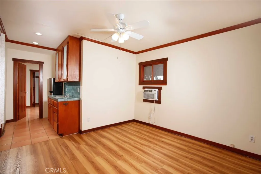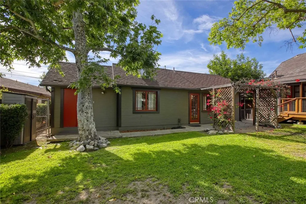 Charming 1925 Craftsman inspired design with exceptional curb appeal, ideally located just moments from vibrant downtown Monrovia. Step into a welcoming living room featuring a decorative fireplace and an arched doorway that leads to a formal dining room complete with classic built-in cabinetry. The updated kitchen includes an eat-in area and blends modern convenience with timeless style. Two bedrooms and a full updated bathroom are located off the hallway. Additional features include window casings, central air and heat, luxury vinyl flooring, a dedicated laundry room, and abundant natural light throughout. Custom deck overlooks the lush backyard filled with mature trees, offering a private and serene outdoor retreat. The craftsman inspired design extends into the guest unit as well. The guest unit offers one bedroom with vaulted ceilings, ceiling fan, a full bath, a kitchenette, providing flexible living options. A storage room is conveniently located at the rear of the property and is connected to the guest unit. A unique opportunity to own a character-rich home with added space and versatility in a prime Monrovia location.