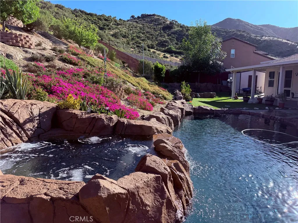 Welcome to Woodmoor Estate! This beautifully maintained pool home has been meticulously cared for and is truly move-in ready. Offering 3 bedrooms, 2 bathrooms, and an oversized 3-car tandem garage, this property combines comfort, style, and functionality. The thoughtfully designed open floor plan features a formal living room and dining room, perfect for both everyday living and entertaining. The spacious, newly remodeled kitchen showcases solid wood cabinetry, quartz countertops, a large island, and a dining area. Just off the kitchen, the inviting family room offers a custom-encased fireplace and plenty of room to gather. The primary suite features backyard views, private access to the backyard, and a large walk-in closet. The beautifully upgraded primary bathroom includes a custom walk-in shower, marble and decorative tile finishes, and dual vanities. Two additional spacious bedrooms and a full secondary bathroom with matching upgrades and dual vanities complete the interior. Additional highlights include laminate flooring, 20x20 tile, neutral custom paint, recessed lighting with dimmer switches, and an oversized laundry room with sink and abundant cabinetry. Step outside to your private backyard retreat, complete with a custom rock pool and spa, concrete hardscape, a full-length patio with Alumawood patio cover, artificial turf, drought-tolerant landscaping, manicured plants, peach, apricot, pomegranate, lemon trees and two stick-built storage work sheds. The property also offers covered RV parking with an extended driveway. Situated on a quiet street with amazing hill