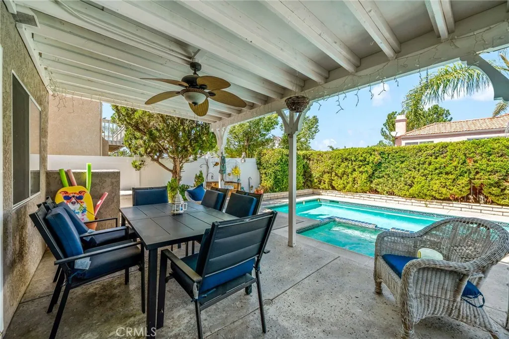 Set within the highly desirable Menifee Lakes community, 30138 Via Palermo presents an exceptional opportunity to own a spacious and beautifully appointed pool home that blends comfort, functionality, and inviting indoor-outdoor living. Offering 4 bedrooms and 3 bathrooms, this residence welcomes you with soaring ceilings and an abundance of natural light that fills the open-concept layout, creating a bright and airy atmosphere throughout. The thoughtfully designed kitchen features stainless steel appliances, Corian countertops, a breakfast bar, and a cozy breakfast nook that overlooks the sparkling backyard poolperfect for casual dining or morning coffee. The kitchen flows effortlessly into the family room with a warm fireplace, while the adjoining living and dining spaces provide ideal areas for both entertaining and everyday living. A versatile downstairs bonus roomideal for a home office, guest space, or potential fifth bedroomalong with a bath adds flexibility not reflected in the recorded square footage. Upstairs, the expansive primary suite offers a peaceful retreat, complete with a private balcony showcasing mountain views and stunning sunset. The ensuite bath has been tastefully updated with dual vanities and an oversized glass-enclosed shower, creating a spa-like experience. Additional bedrooms are generously sized, offering comfort and adaptability for family or guests. Step outside to your own private backyard oasis featuring a covered patio, low-maintenance landscaping, and a refreshing in-ground pool and spaperfect for entertaining, relaxing, or enjoying warm
