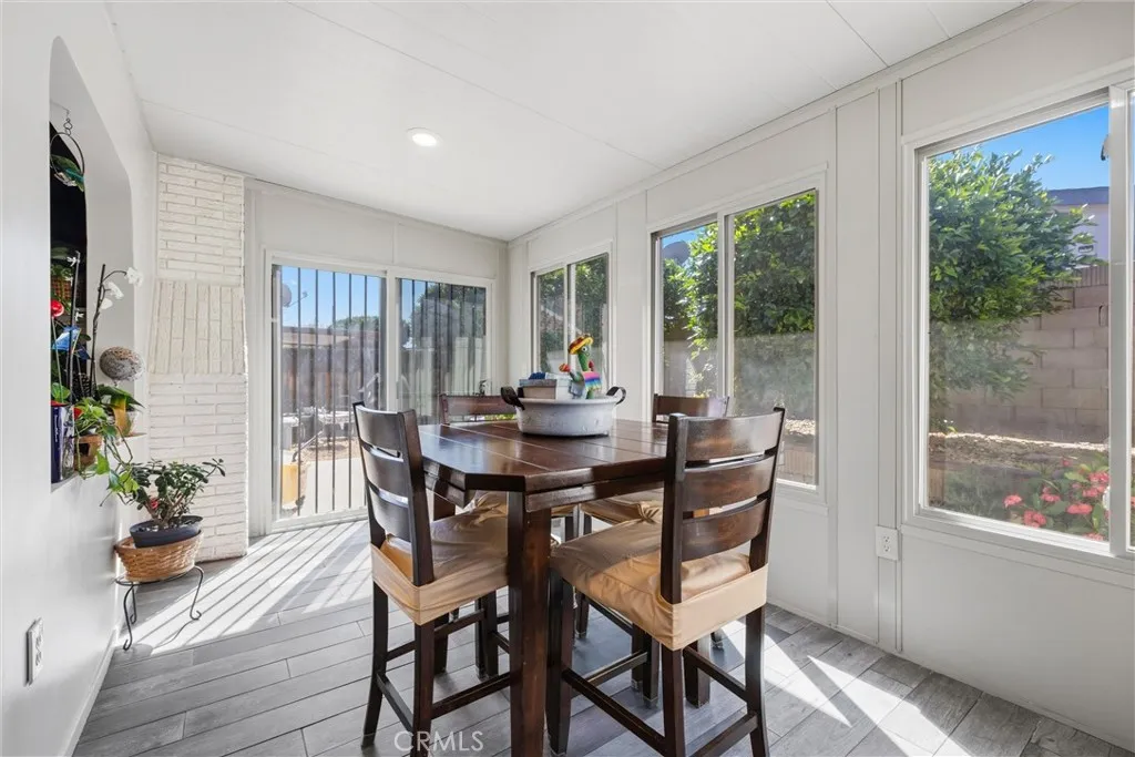 Welcome to this beautifully maintained home in a sought-after 55+ community where thoughtful design, natural light, and outdoor living come together seamlessly. With two spacious bedrooms and two full bathrooms, the layout is both functional and inviting. The private primary suite offers a quiet retreat with its own dedicated bathroom, giving you the comfort and independence you deserve. The true heart of this home is its open, light-filled living space where the sunroom flows naturally into the living and kitchen areas, creating an expansive, airy feel that's rare at this price point. Whether you're hosting friends or enjoying a quiet morning, this connected space makes every occasion feel effortless. The well-appointed kitchen features generous cabinetry and plenty of counter space, while the sun-drenched dining area sets the perfect scene for both everyday meals and memorable gatherings. Step outside to front and back patios surrounded by mature fruit trees a peaceful, private setting ideal for gardening, entertaining, or simply unwinding at the end of the day. The home also features solar panels, helping keep energy costs low and making everyday living that much more efficient. And when you're ready to socialize, the community's sparkling pool and jacuzzi are just steps away perfect for staying active, relaxing, and connecting with neighbors in a warm, welcoming environment. Conveniently located minutes from shopping, dining, freeway access, and everyday essentials, this home delivers the lifestyle you've been looking for.
