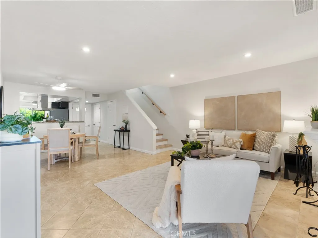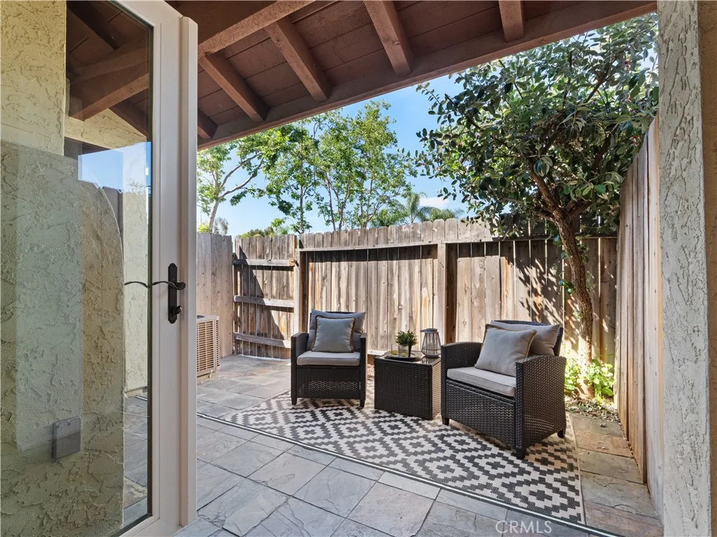 Beautifully RENOVATED townhome. This move-in ready 2 bedroom 2.5 bath home has been thoughtfully updated throughout, offering modern finishes and comfortable living. Step into a bright and inviting living space featuring recessed lighting in both the living room and kitchen, along with a cozy wood burning fireplace that creates the perfect setting for relaxing evenings. French doors open to a private courtyard, creating a seamless indoor-outdoor flow ideal for entertaining or enjoying your own quiet retreat. The home has been freshly painted and features brand new upper level white oak flooring and newly updated stairway. Double pane windows enhance energy efficiency and comfort, while a newly installed HVAC system ensures year round comfort year round climate control. The updated bathrooms showcase new vanities, contemporary fixtures, and spa like full bath featuring a high pressure rain shower head with handheld option. perfect for a relaxing elevated daily routine. Additional highlights include washer and dryer hookup upstairs, one car detached garage, and an additional uncovered carport for convenient parking. Step outside to your own private, cozy backyard, perfect for barbecuing, entertaining, or simply unwinding. Perfect for first time buyers, investors, or anyone looking for a turnkey property in a central location close to schools, shopping, dining, and freeway.