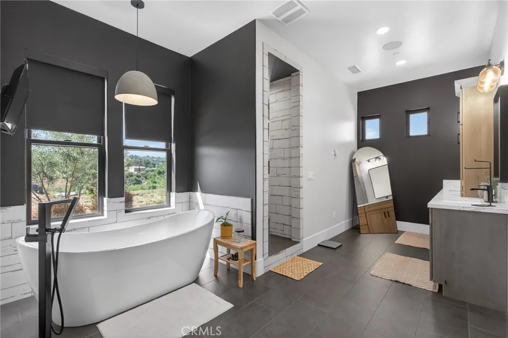 ALESSANDRO HEIGHTS Discover the ultimate blend of modern farmhouse charm and luxurious living in this exquisite custom estate. Thoughtfully designed for those who crave the tranquility of a rural lifestyle while staying just minutes from city conveniences, this home truly has it all. The striking exterior features dramatic board-and-batten siding, a standing seam metal roof, and Anderson Fibrex clad windows, ensuring both timeless style and low-maintenance durability for years to come. Perched on an elevated lot, the property offers breathtaking views of rolling hills, twinkling city lights, and majestic mountains. Step inside to an expansive open-concept layout, anchored by a massive great room perfect for gathering with family and friends. The chefs dream kitchen boasts a walk-in butlers pantry and top-of-the-line built-in appliances, while a formal dining room provides the perfect space for hosting elegant dinners. The split floor plan offers privacy and practicality, with the secluded primary suite at one end of the home and four additional bedroomsincluding a secondary primary suiteon the opposite side. Outdoor living is equally impressive, featuring a covered patio with a built-in barbecue kitchen and bar, a sparkling pool with an elevated spa and cascading waterfalls, and ample space for entertaining. The over-sized 1,100SF three car garage and generous onsite parking, including RV accommodations with 50 amp power and waste dump, ensure plenty of room for all your vehicles and guests. The gently sloping property also offers endless possibilitiesimagine adding horse