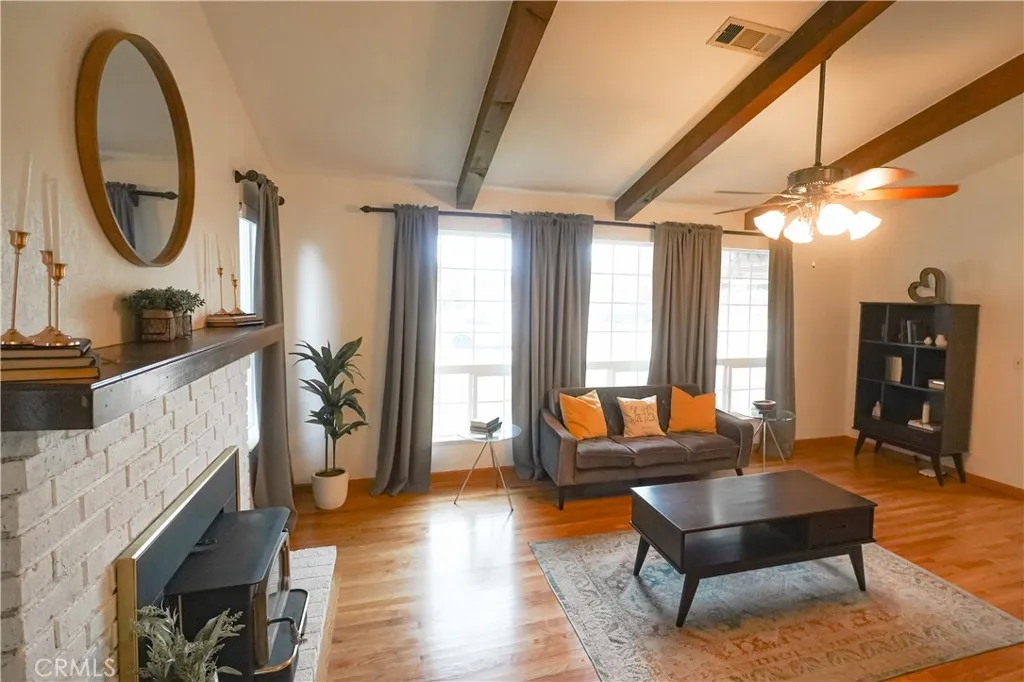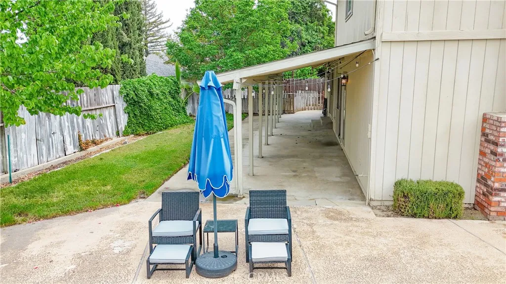 Welcome to your private retreat at the end of a cul-de-sacwhere everyday living feels like an inviting getaway! This stunning 4-bedroom, 3-bath residence with a 2-car garage makes a grand first impression with dramatic double-door entry and soaring vaulted ceilings that immediately set the tone for elegance and space. The heart of the home is a gorgeously updated kitchen designed to impress, featuring sleek quartz countertops, a stylish tile backsplash, a new stove, and modern finishes. It flows seamlessly into the inviting family room, complete with a cozy fireplace, custom built-ins, and a wet barperfect for relaxed evenings or lively gatherings. Entertain effortlessly in the expansive living room with its own charming fireplace, or host memorable dinners in the formal dining area framed by natural light and refined details. Step outside and discover your personal resort-style oasis. The backyard features a sparkling gunite swimming pool, an expansive covered patio that spans the length of the home, a breezeway, open-air lounging spaces, and a gated garden bed ready for your vision. This is a space designed for both serene mornings and unforgettable entertaining under the stars. The primary suite is your sanctuary, offering a serene sitting area, a generous walk-in closet, and private bathroom. Secondary bedrooms are comfortably sized, providing flexibility for family, guests, or a home office. Additional highlights include ceiling fans throughout, RV parking, some freshly painted cabinetry, a large matching storage shed, and garden storage. This home is the perfect blend