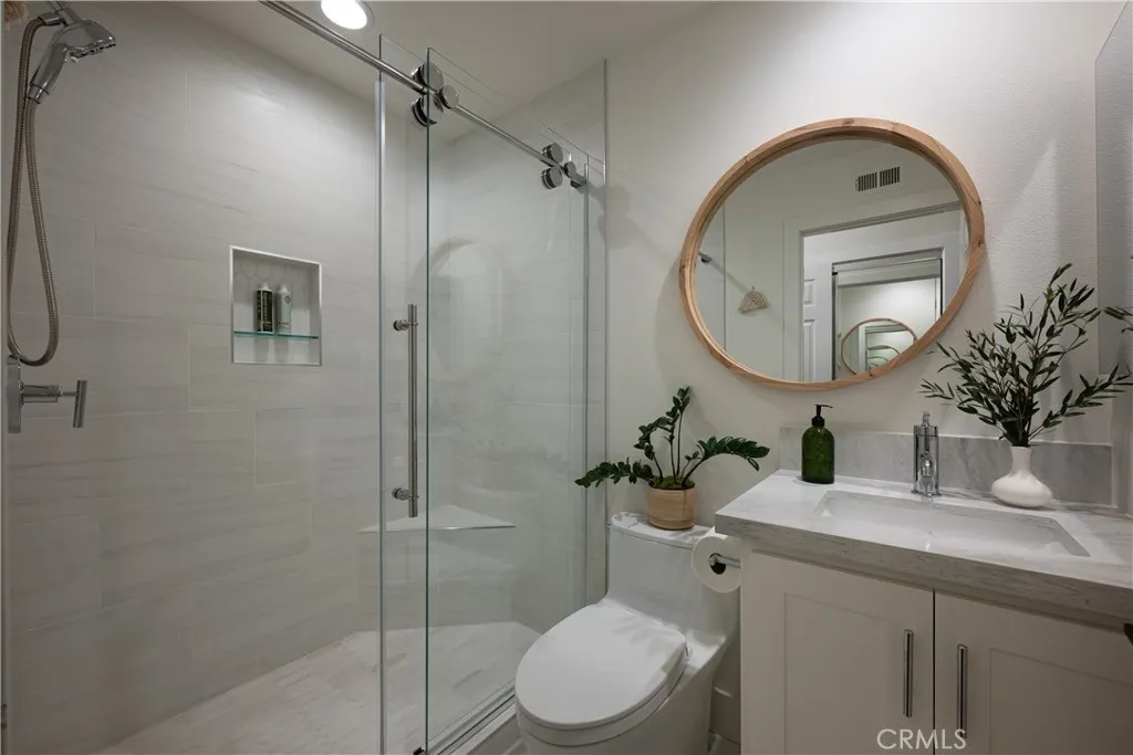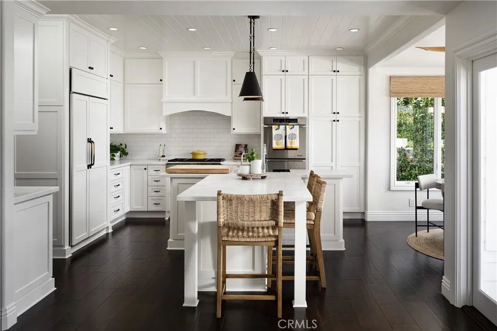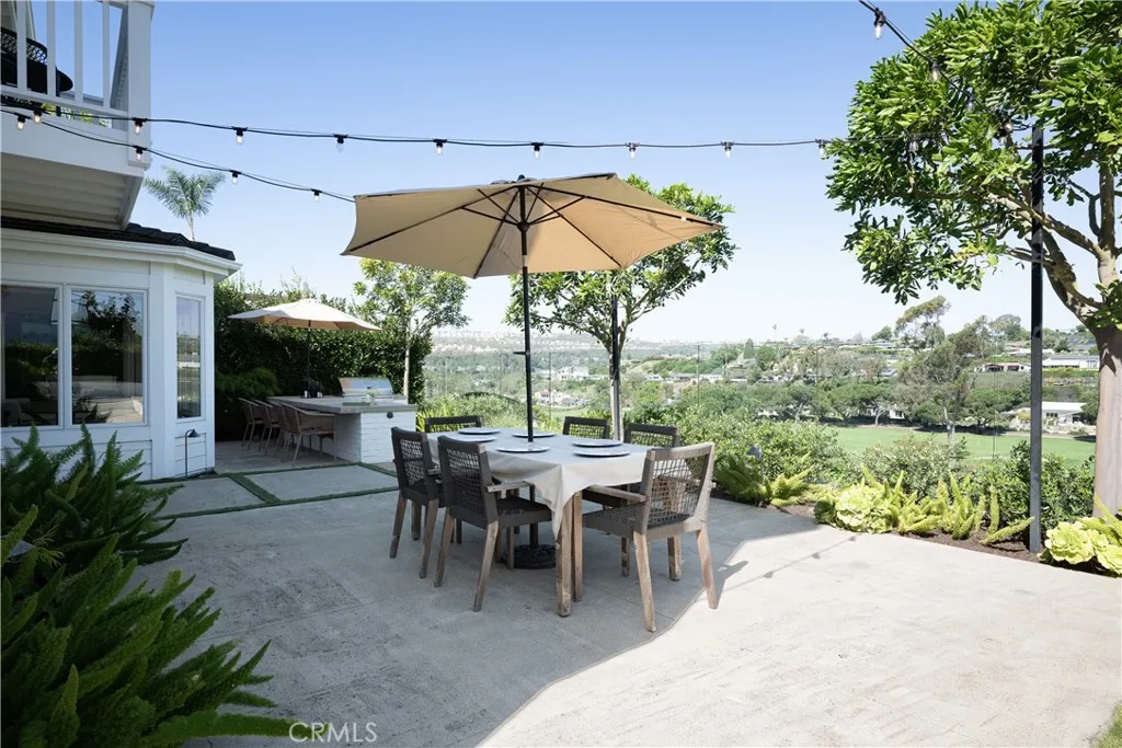 Welcome to a rare offering in the highly sought-after El Niguel Heights community of Laguna Niguel, where homes seldom come to market. This impeccably upgraded residence features 5 bedrooms and 4.5 bathrooms, offering over 3,600 square feet of refined living space on a 7,000+ square foot lot, complete with stunning golf course views along the 15th fairway. A custom Dutch door welcomes you into a dramatic entry with soaring ceilings, rich hardwood flooring, and thoughtfully designed living and entertaining spaces, including a dedicated game room. The chefs kitchen is beautifully appointed with custom shaker cabinetry, Calacatta Michelangelo marble countertops, a Dacor 6-burner range, double ovens, Sub-Zero refrigerator, and a spacious walk-in pantry, all opening seamlessly to the family room with an integrated whole-home speaker system. The main level includes a bedroom with a fully remodeled en-suite bathideal for guests or multigenerational living. Upstairs, the luxurious primary suite offers sweeping golf course views, a rebuilt private balcony, and a newly renovated spa-inspired bathroom featuring a soaking tub and Kohler bidet. Extensive upgrades throughout the home include PEX piping, a tankless water heater, water softening system, Nest thermostat, new windows and doors, designer lighting, and fully remodeled bathrooms. The backyard is designed for both relaxation and entertaining, featuring a built-in BBQ, oversized spa, fire pit seating area, and frameless glass fencing that maximizes the unobstructed golf course views. The finished garage is equipped with epoxy flo