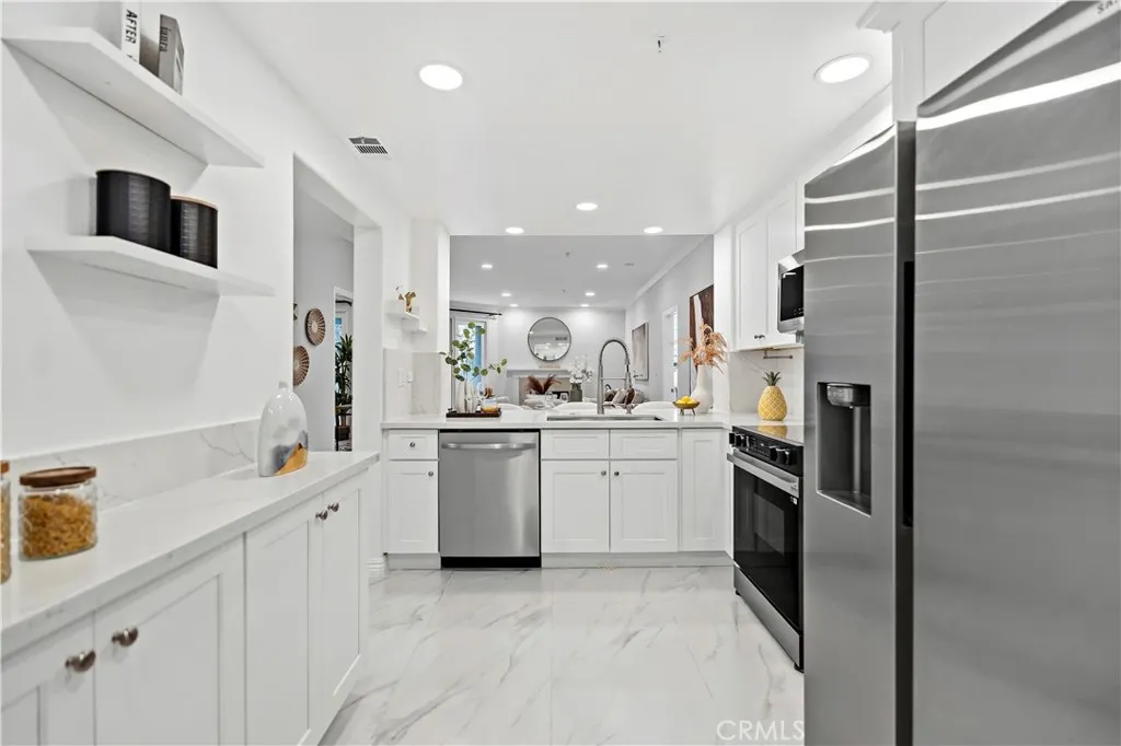 Luxury, convenient, and affordableone of the largest and most desired models in the Metropolitan community. Ideally located on a corner lot with only one shared wall. Spacious patio with an exclusive-use planter, perfect for a personal garden, plus two assigned parking spaces. Thoughtfully designed dual-master layout with walk-in closets, including one oversized for a potential third bedroom or study. Bright and inviting 9-ft ceilings, recessed lighting, and crown molding. Fully upgraded kitchen and baths feature quartz countertops, breakfast bar, high-gloss soft-close cabinetry, and new appliances under a full-year warranty. Porcelain tile in kitchen and baths, dual vanities with waterfall faucets, and dimmable LED mirrors. One bath offers a walk-in shower, a freestanding soaking tub with massage jets; the other features a full-size walk-in shower with a marble bench. Separate toilet rooms for maximum privacy and utilization. Luxury vinyl flooring throughout the living and bedrooms. Prime Irvine Business Complex locationnear major freeways and within walking distance to John Wayne Airport, banking, dining, and yet tucked in a quiet, private setting. Minutes from leading healthcare providers such as Hoag Urgent, UCI Health, and CHOC Children's, and premier shopping destinations like Diamond, The District, and South Coast Plaza. Maintenance-free lifestyle with resort-style amenities, professional on-site management known for its supportive community focus. Gated access with a guard and 24-hour security. HOA dues cover insurance, water, sewer, gas, trash, as well as access to