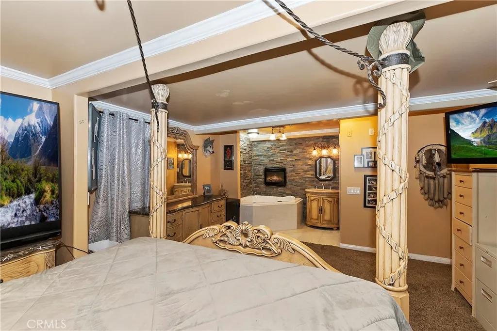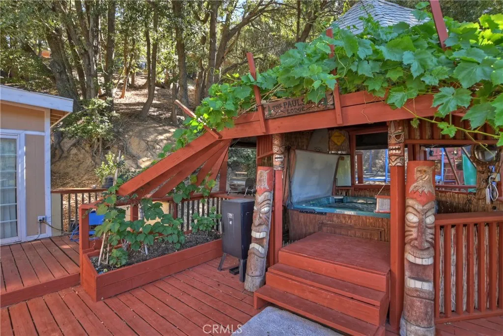Beautiful home walking distance from the lake and town shopping. 4 bedroom, 3 baths, of which 2 bedrooms are master suits. MOVE IN READY, with modern updates, and new carpet in living room and on the stairs. Front row seats to annual firework show. Many fruit bearing trees in the garden such as apples, grapes, blackberries, and almonds. Indoor sauna and tanning bed. Large deck with BBQ. Plus Jacuzzi and gazebo with grape trellis growing up gazebo. Lower level could be used as a Mother-in-law unit with separate entry. Lower level bathroom includes a spa tub and separate steam shower. Large driveway that can be used for multiple cars. Comes furnished. Would be a great Air B & B, Primary residents, Vacation home, or rental. All this on two lots and includes a play area. Agent is related to seller.