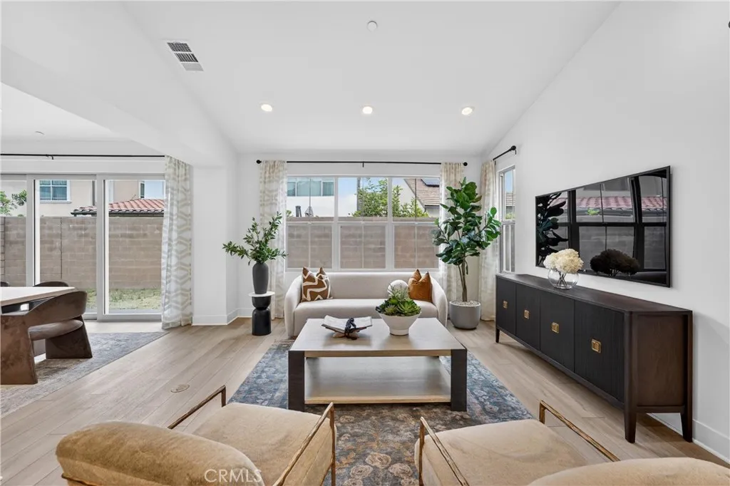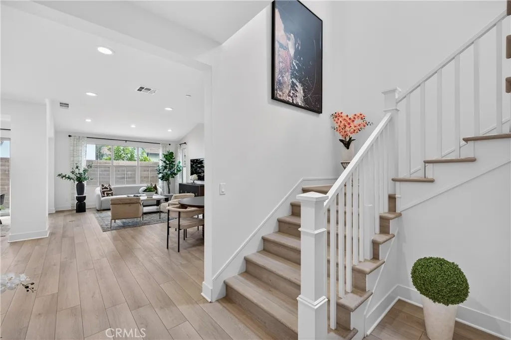 Welcome to this new built, move-in ready home in the prestigious guard-gated Reserves at Orchard Hills. Thoughtfully designed and meticulously crafted, this elegant two-story residence offers a refined blend of luxury, comfort, and modern functionality, ideally located near Terrace View Park and award-winning Irvine schools. The open-concept interior is enhanced by 9-ft. ceilings and luxury vinyl plank flooring, creating a bright and sophisticated setting for everyday living. A spacious conservatory adds a distinctive touch, offering an inviting space for entertaining or relaxation. At the heart of the home, the beautifully appointed kitchen features sleek thermofoil cabinetry, Carrara Miksa quartz countertops, and premium Wolf and Cove stainless steel appliances. The primary suite presents a serene private retreat, complete with a vaulted ceiling, generous walk-in closet, plush carpeting, and a spa-inspired bath with a dual-sink vanity, soaking tub, and walk-in shower. A dedicated laundry room with built-in cabinetry and sink further enhances the homes thoughtful design. Additional features include over $43,000 in builder upgrades, water-efficient front yard landscaping, a solar energy system, and LED lighting. Residents enjoy access to Orchard Hills resort-style amenities, including pools, parks, and scenic trails, all within one of Irvines most desirable gated communities.