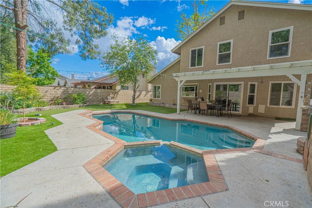 HIGHLY UPGRADED POOL HOME WITH VIEWS. This beautiful 4-bed, 2.5-bath home is nestled in a desirable cul-de-sac location with stunning park views from the rear of the home and mountain views from the front of the home. Step inside to find a spacious open floor plan, new carpet throughout, bamboo flooring, and fresh interior paint. Remodeled kitchen has stainless steel appliances, lots of cabinets w/ pull out drawers and a walk-in pantry. The family room can be a cozy dining area w/fireplace. The remodeled primary suite has peaceful views, a decorative wall, a high ceiling, and a custom-built-in closet. The remodeled primary bath is very spacious. The home is enhanced w/ smart home technology, including automated blinds, lighting, and smart toilet, along with ceiling fans in all rooms for added comfort. Major system and efficiency upgrades include paid solar, replacement energy-efficient windows and doors, upgraded energy-efficient roofing, reinsulated attic, whole house fan, attic fan, and a tankless water heateroffering exceptional energy savings and year-round comfort. The backyard is truly an entertainers dream. Enjoy a sparkling swimming pool and spa with full smart automation and a self-maintaining chemical system, a cozy firepit and seating area, and a beautifully landscaped yard featuring artificial turf, a faux rock wall, and a lush garden with beautiful trees and flowers. Fully equipped outdoor kitchen with a refrigerator and ample space for gatherings, all complemented by a covered entertaining area with misters and lighting. There is also direct backyard access to